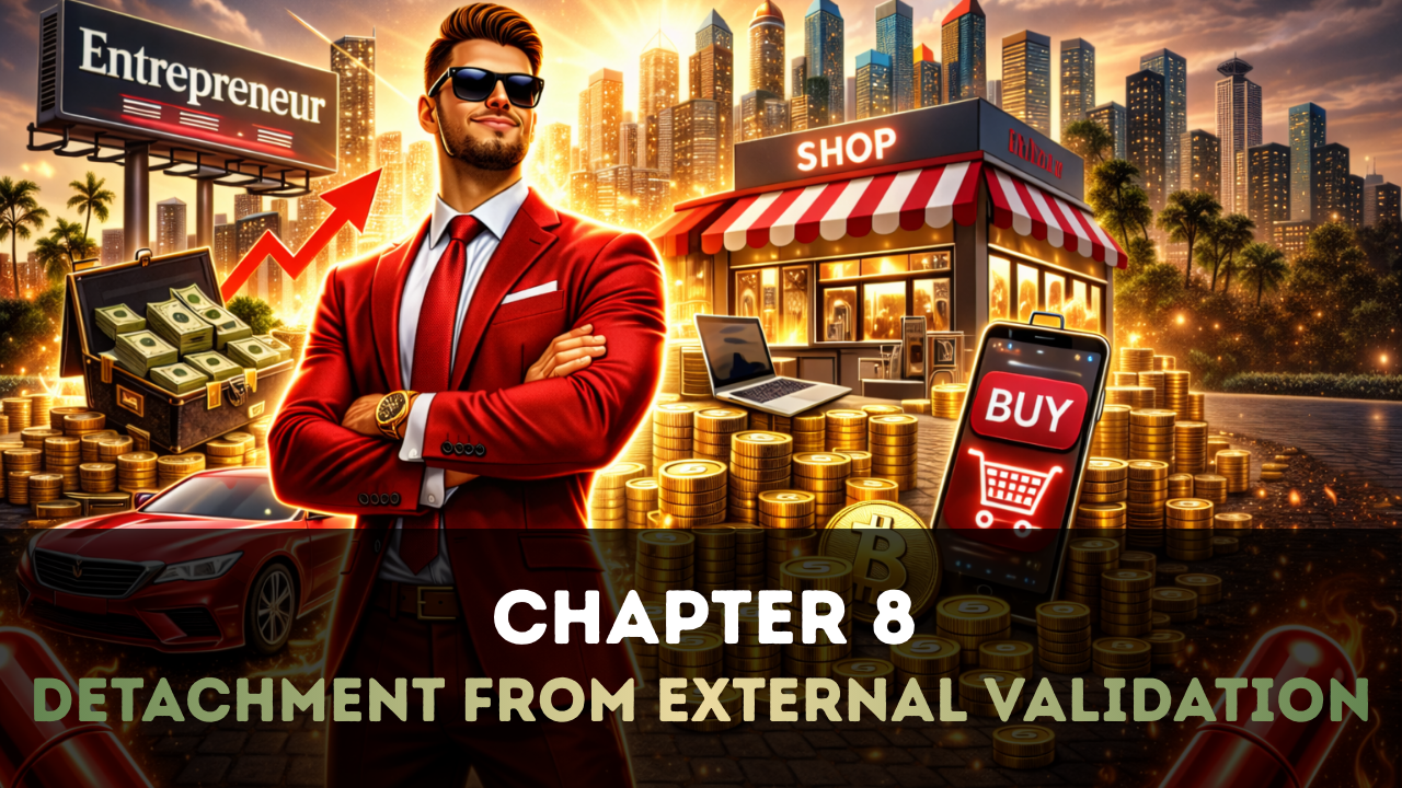 Confronting approval-seeking tendencies, this chapter urges entrepreneurs to measure progress through metrics rather than applause. Emotional independence protects focus during market volatility. Self-respect replaces reassurance, enabling consistent execution without being destabilized by fluctuating opinions or inconsistent feedback.